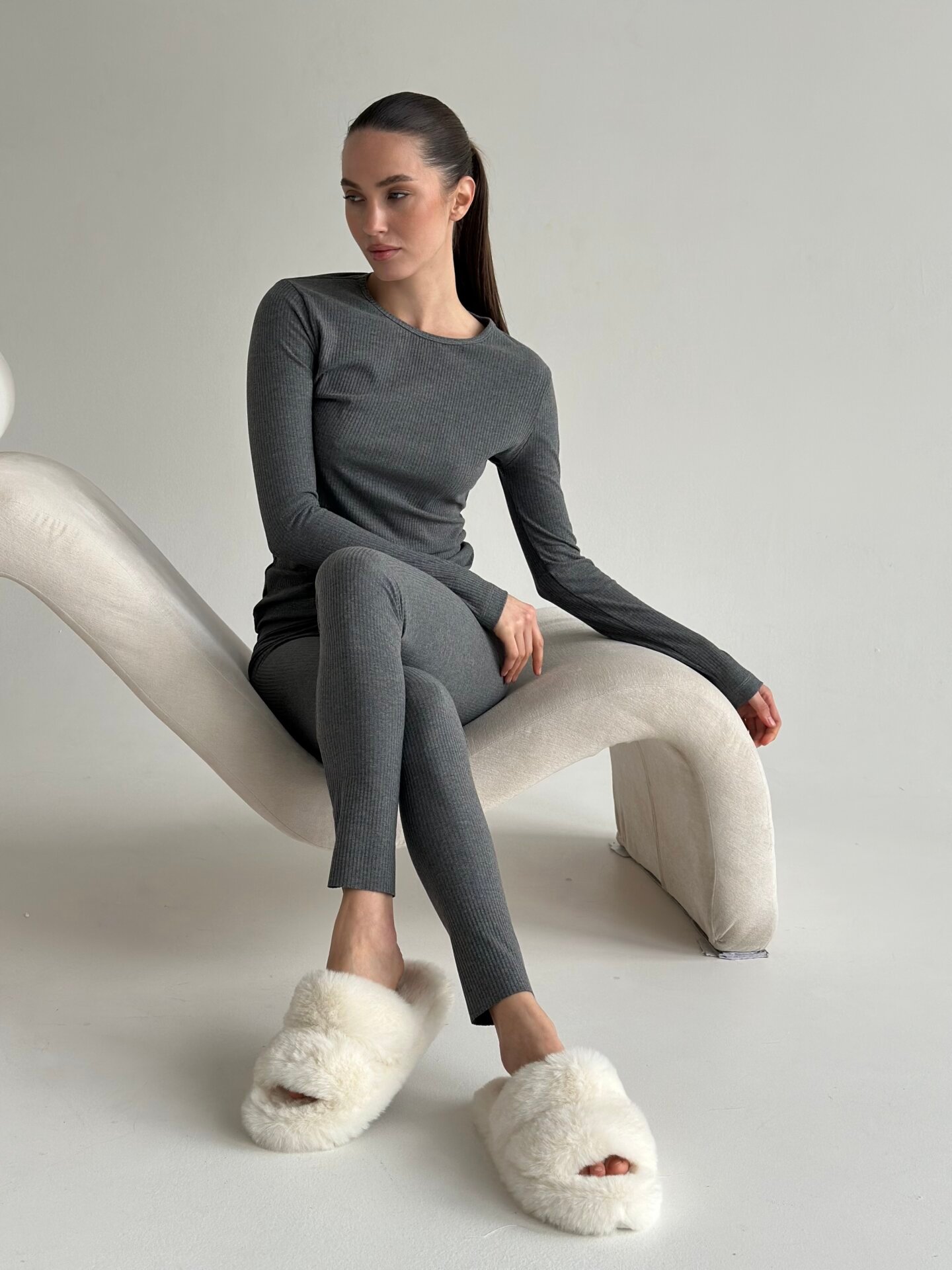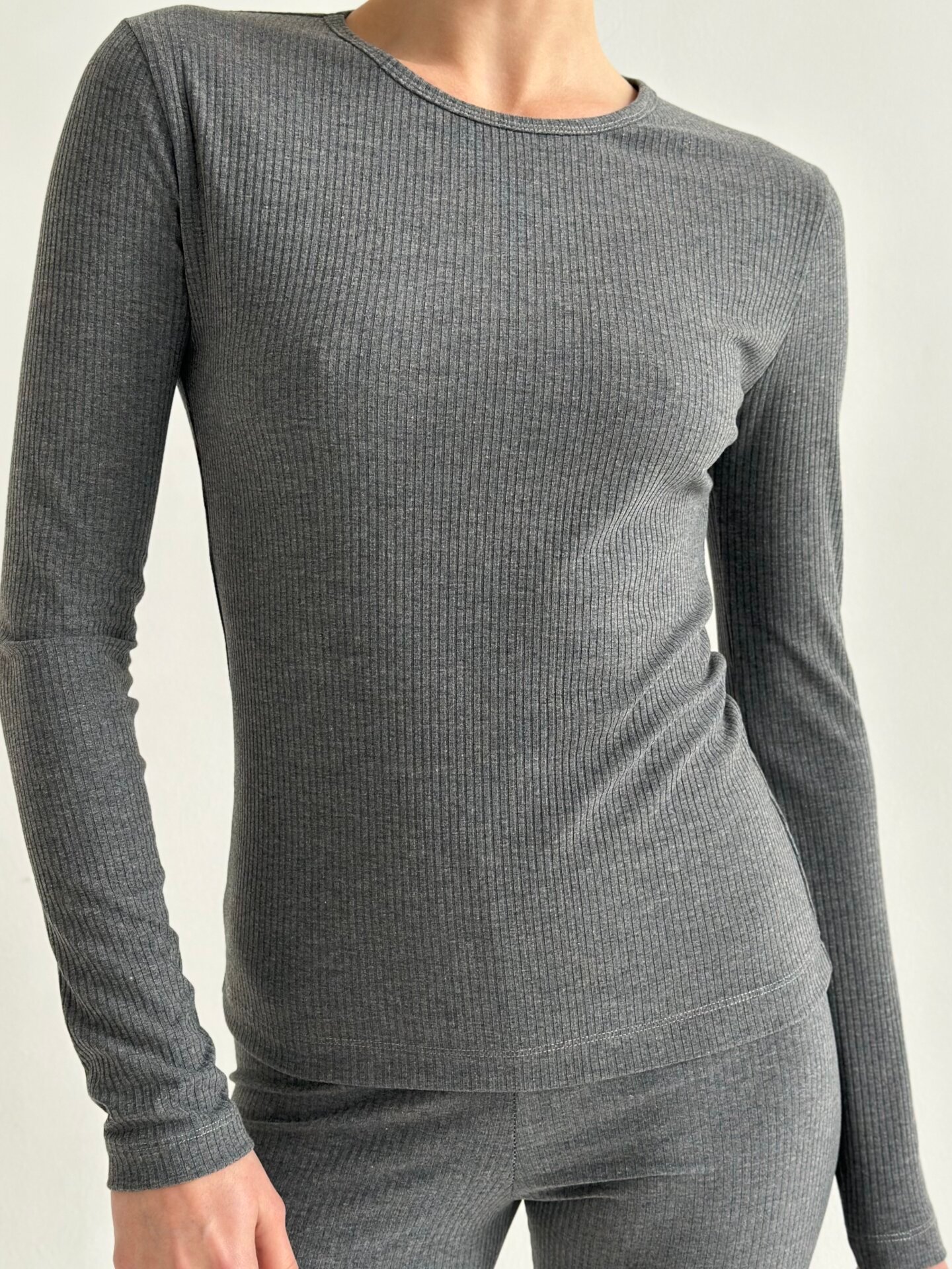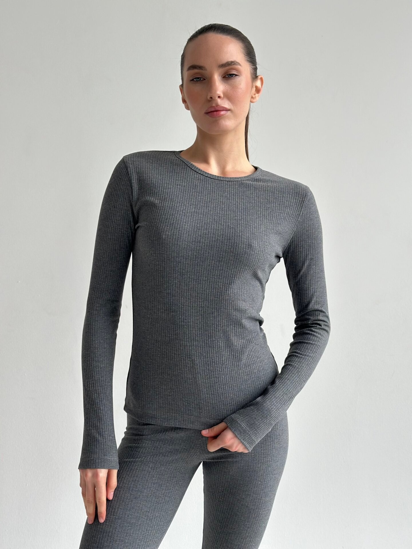 Трикотаж рубчик широкий Костюм лонгслів та лосини антроцит