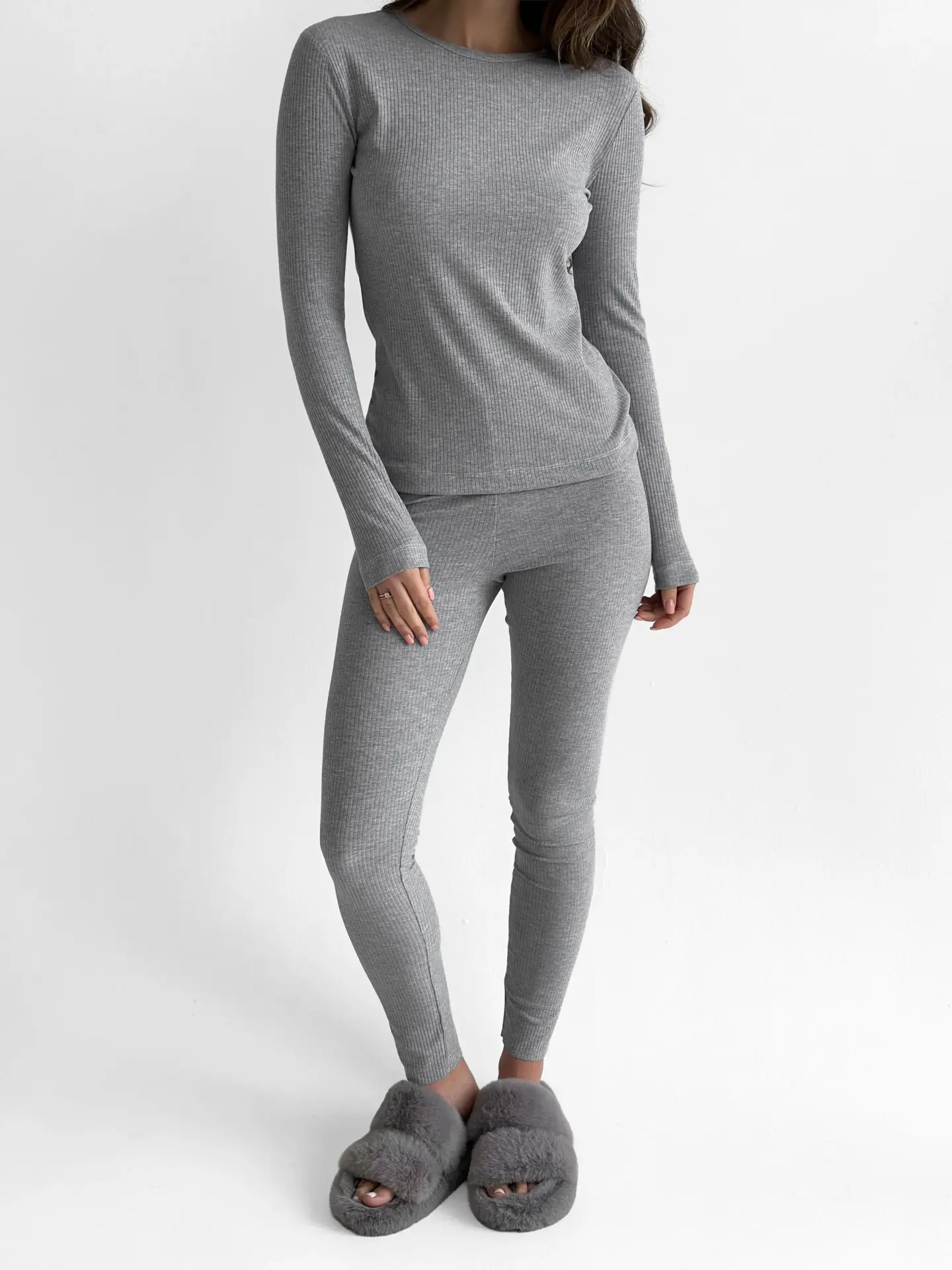 SOLD OUTТрикотаж рубчик широкий Костюм лонгслів та лосини сірий