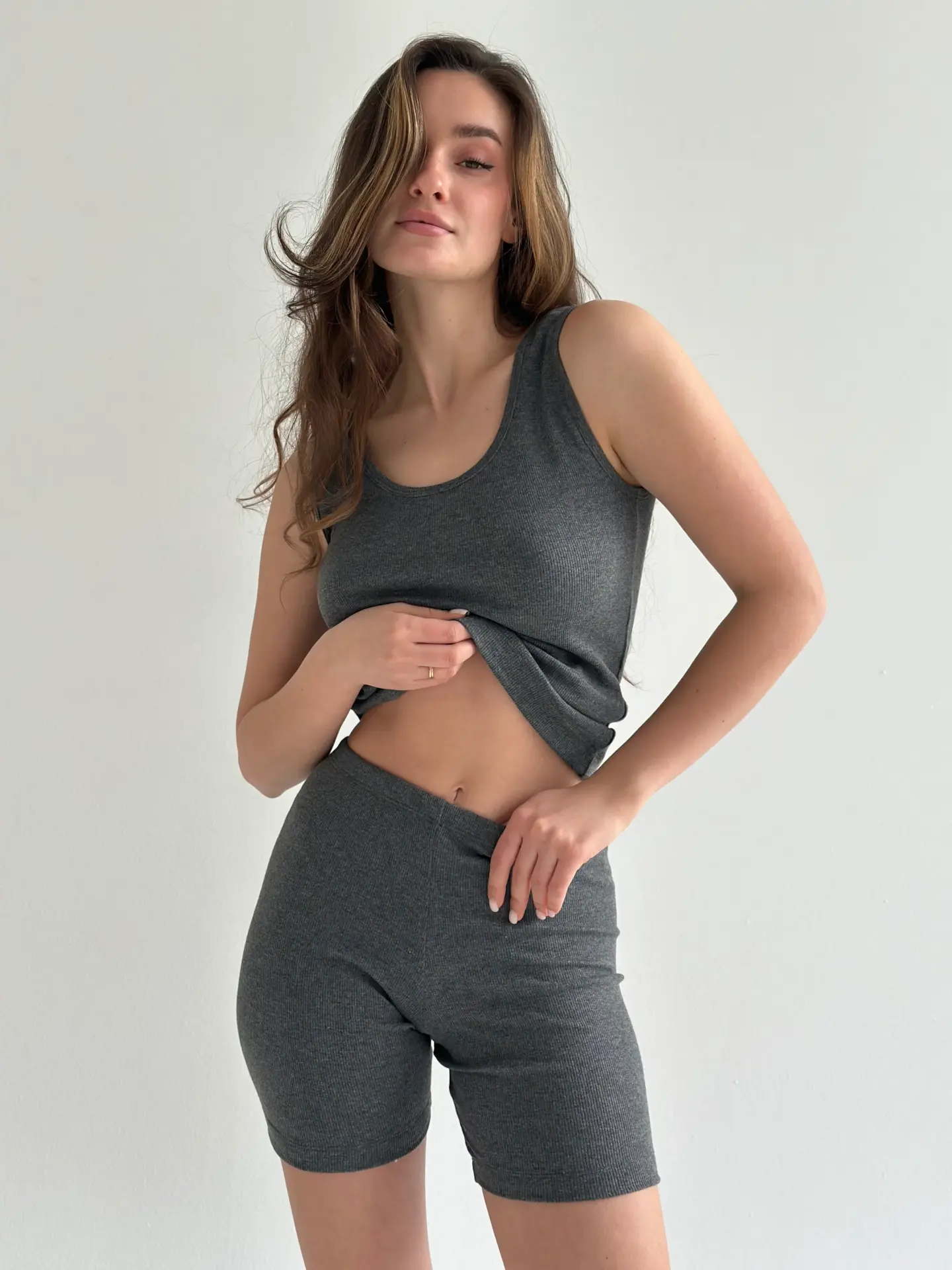 Велотреки з трикотажу рубчик поєднують зручність і стиль. Еластична тканина забезпечує комфорт та свободу рухів. Базова річ, яка легко доповнить повсякденний гардероб.