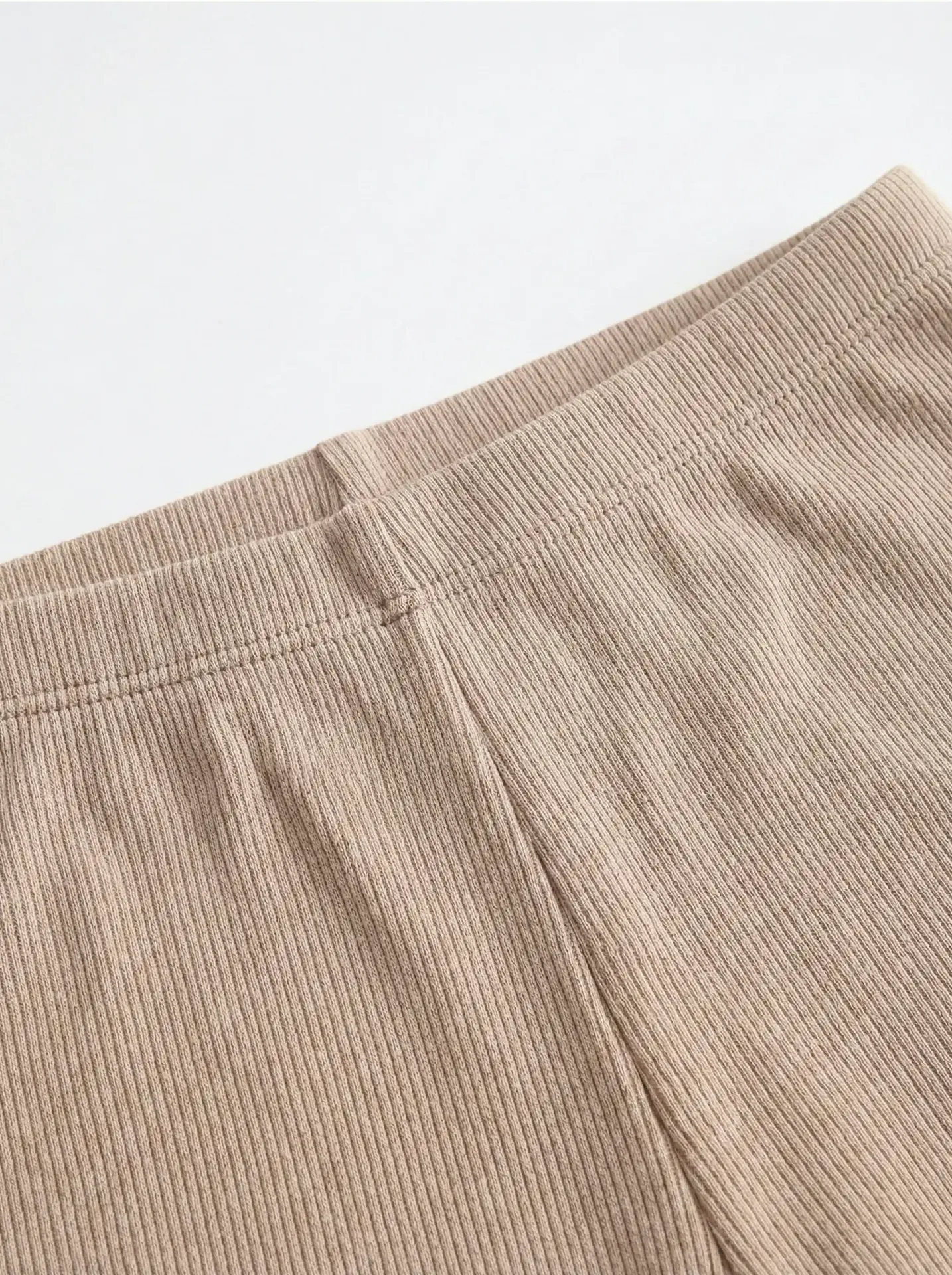 Велотреки з трикотажу рубчик поєднують зручність і стиль. Еластична тканина забезпечує комфорт та свободу рухів. Базова річ, яка легко доповнить повсякденний гардероб.