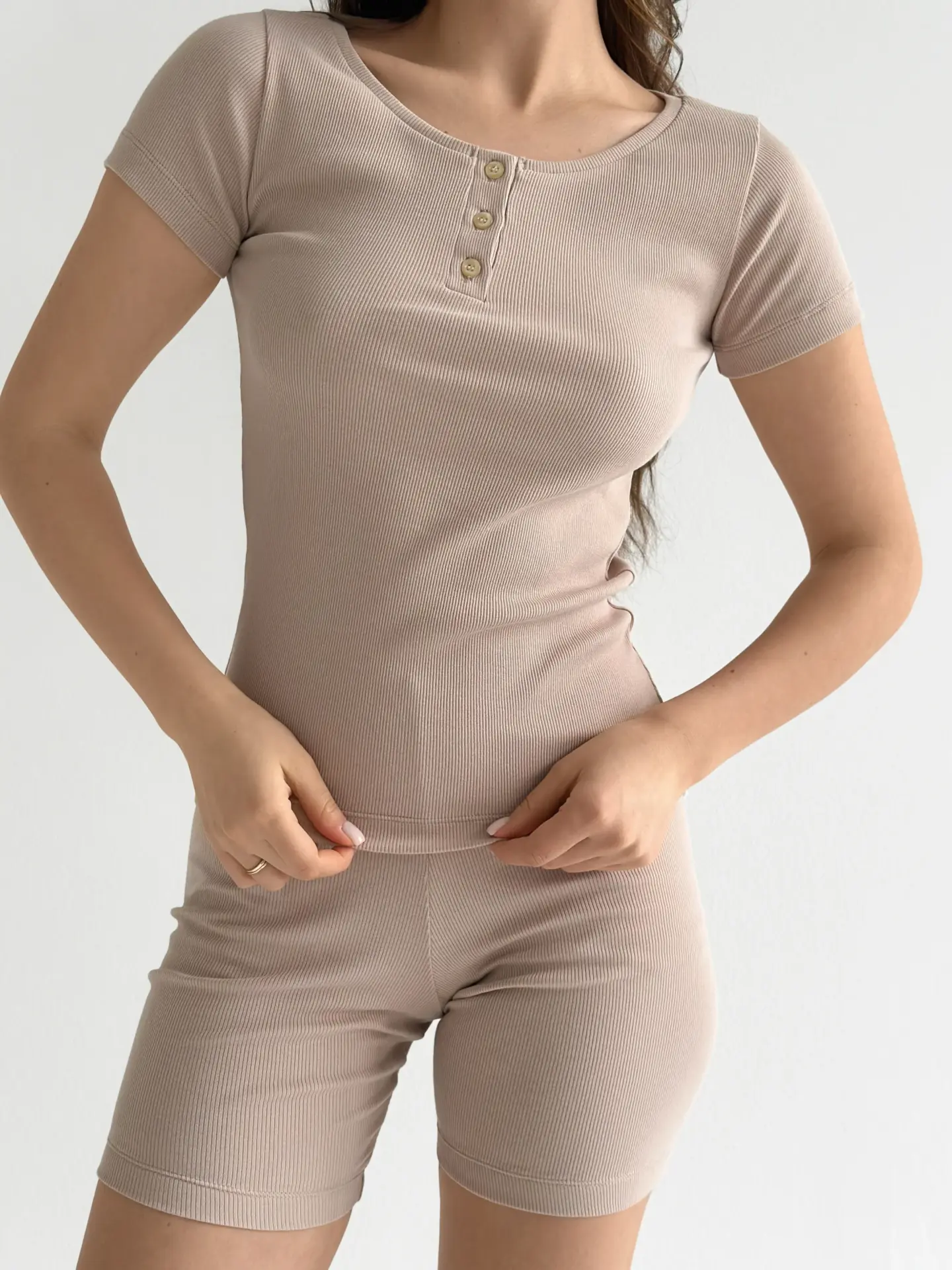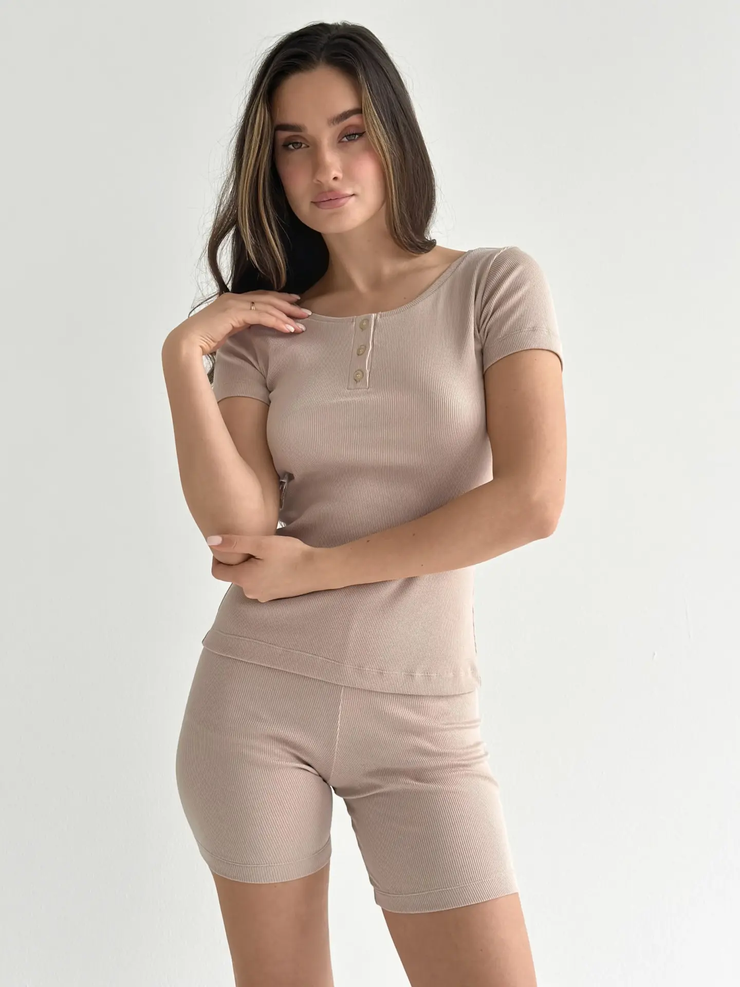 NewТрикотаж рубчик Футболка з гудзиками бежева