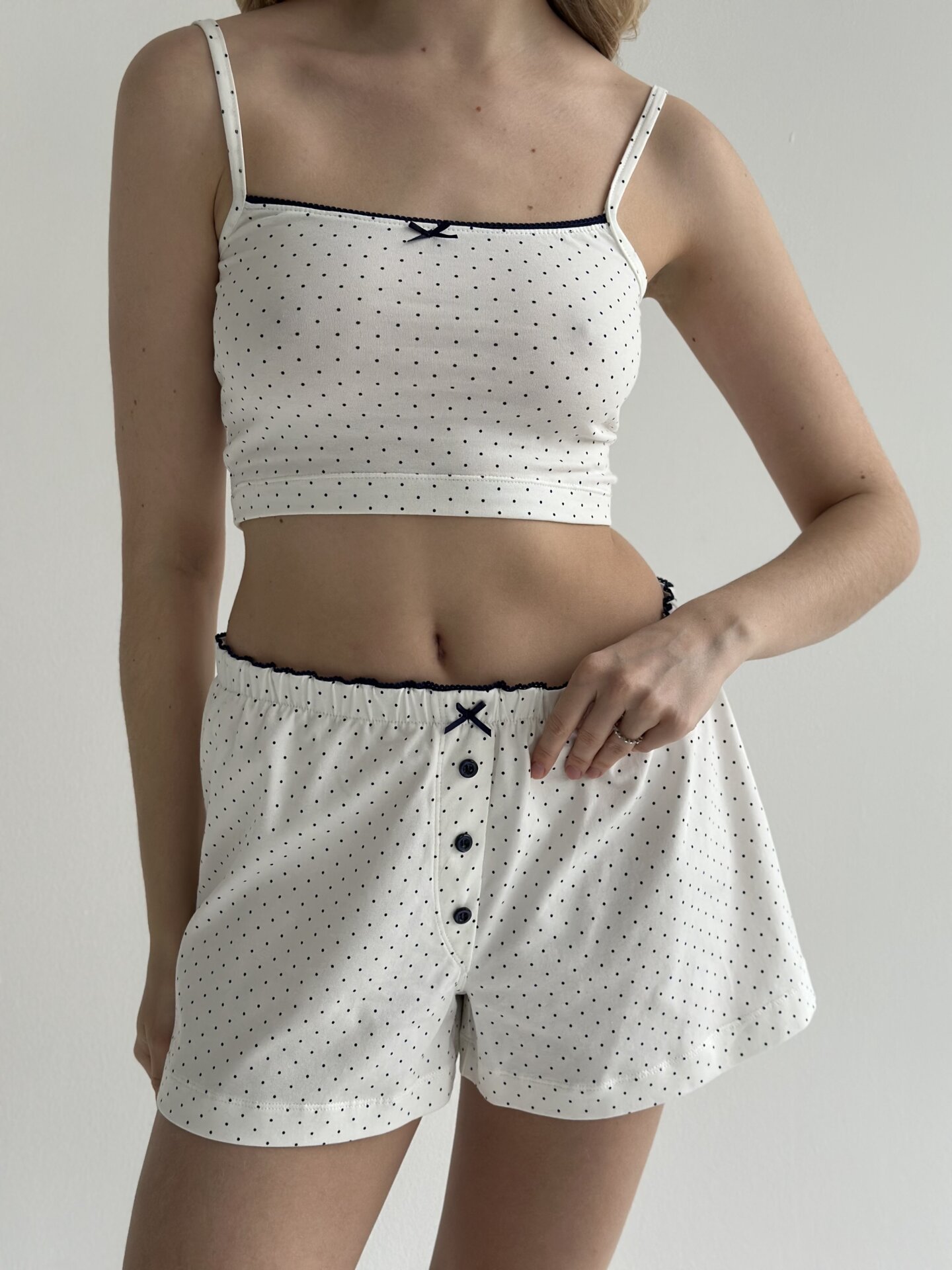 ТОПТрикотаж сукня для сну з обробками горох синій на білому