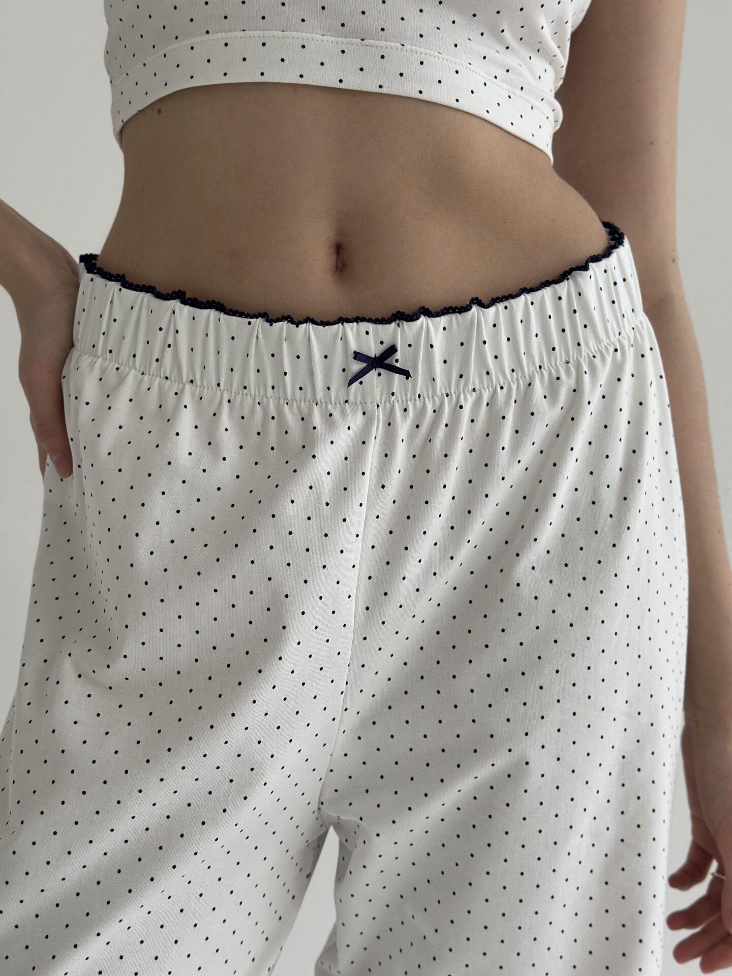 ТОПТрикотаж комплект штани та лонгслів горох синій на білому