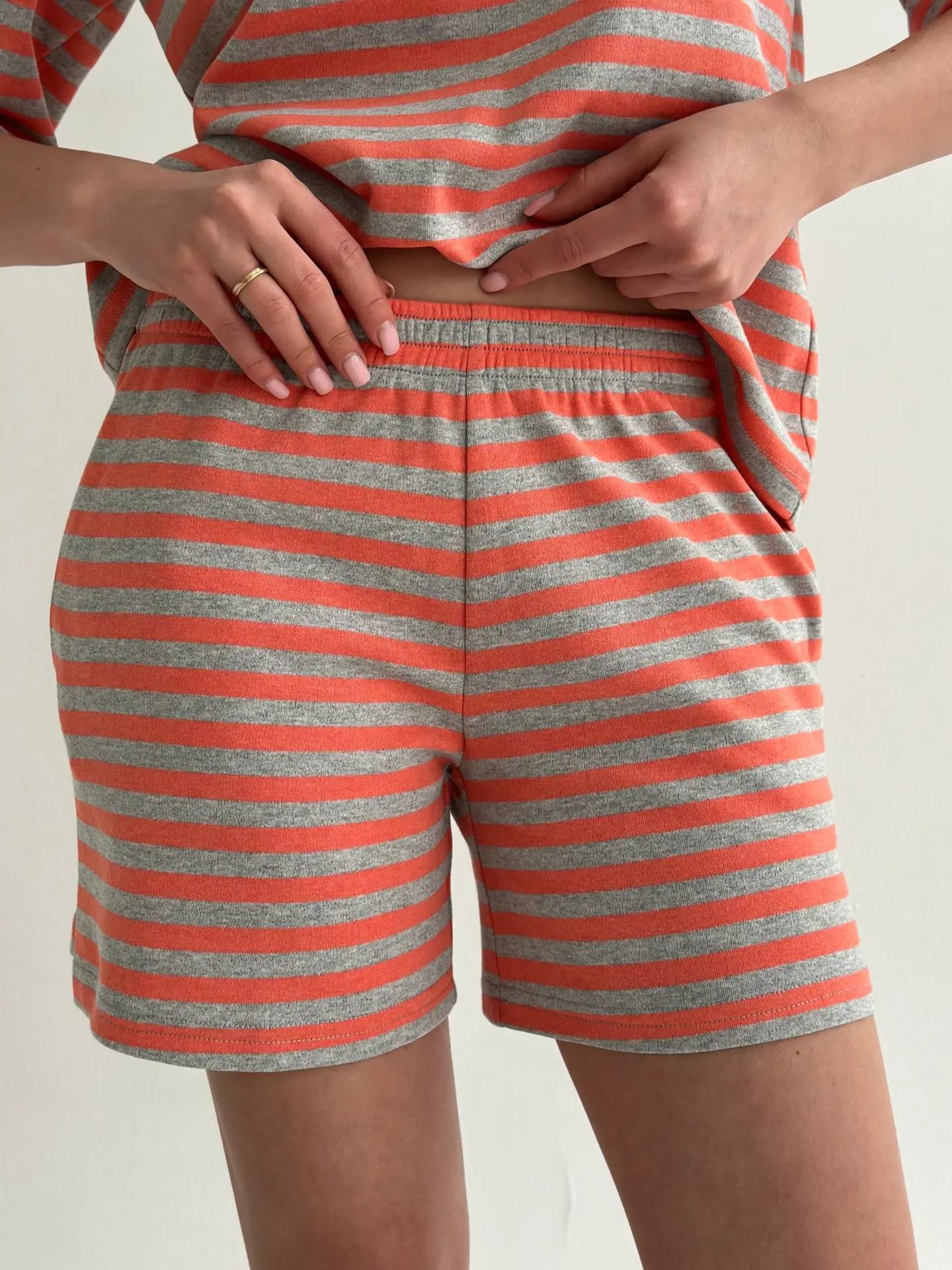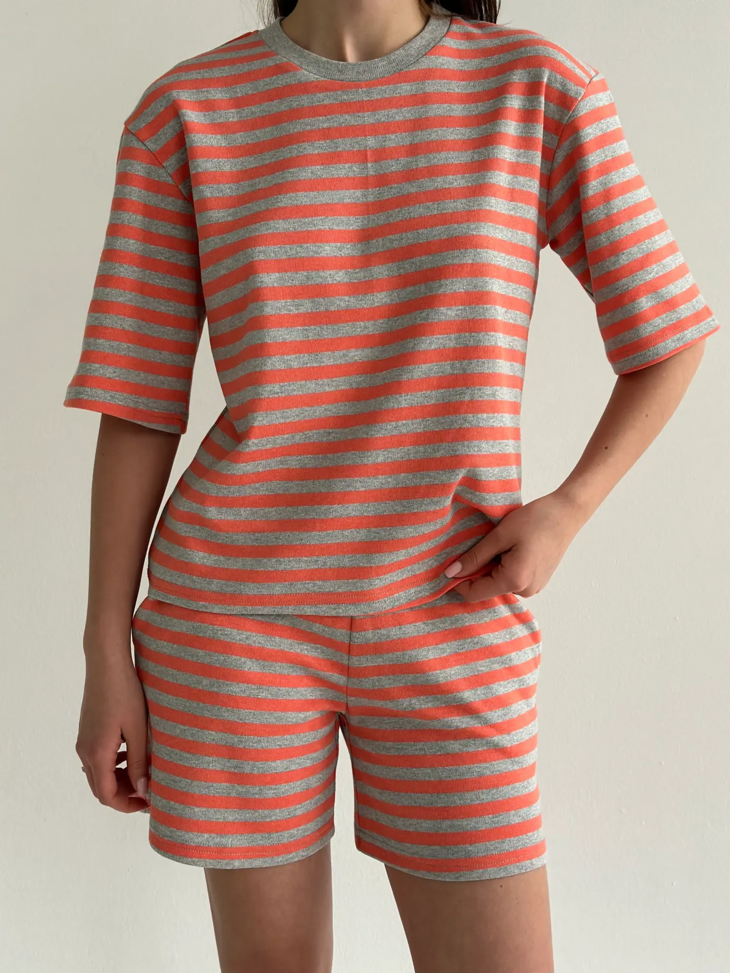 Трикотаж смужка Костюм футболка та шорти сірий/помаранчевий