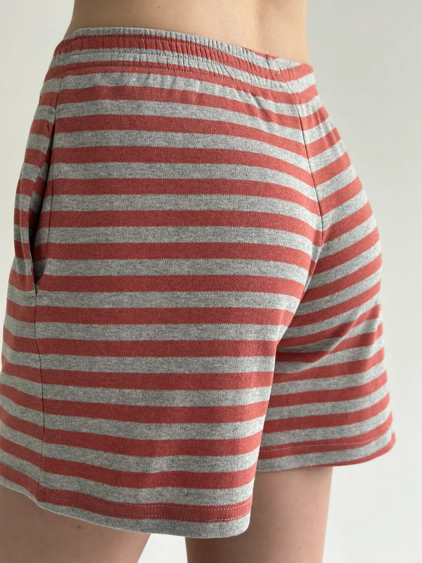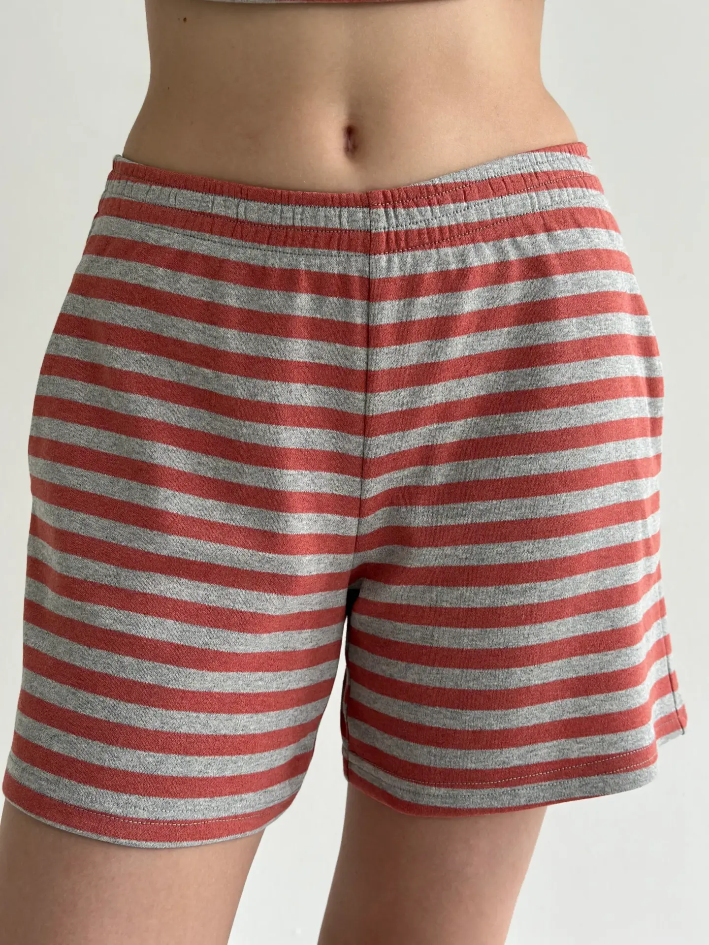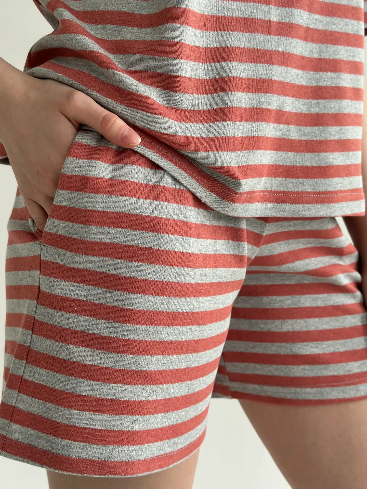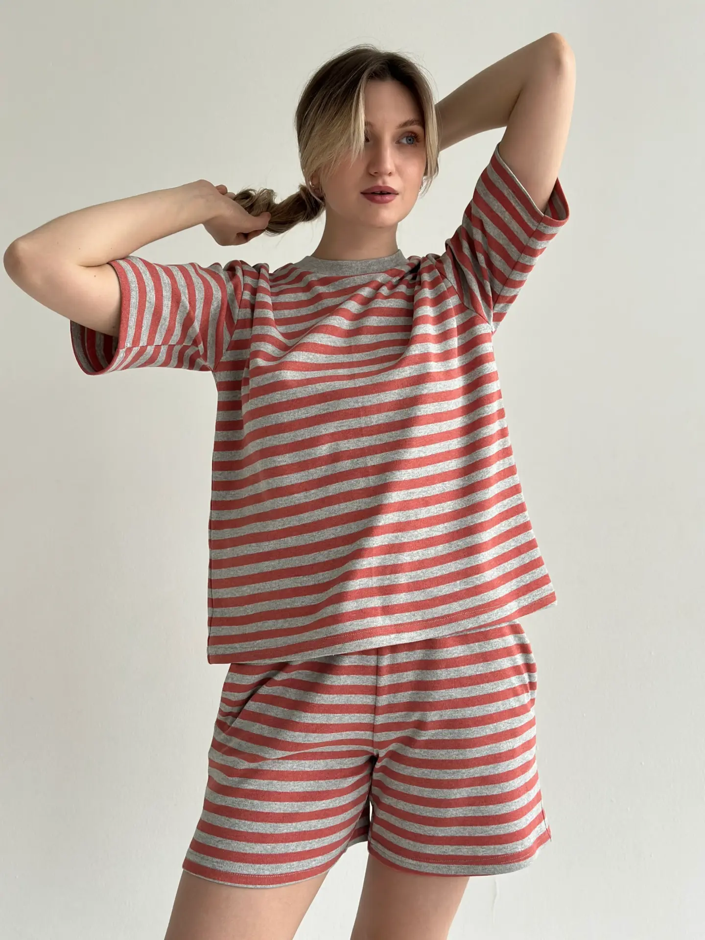 Трикотаж смужка Костюм футболка та шорти сірий/теракот