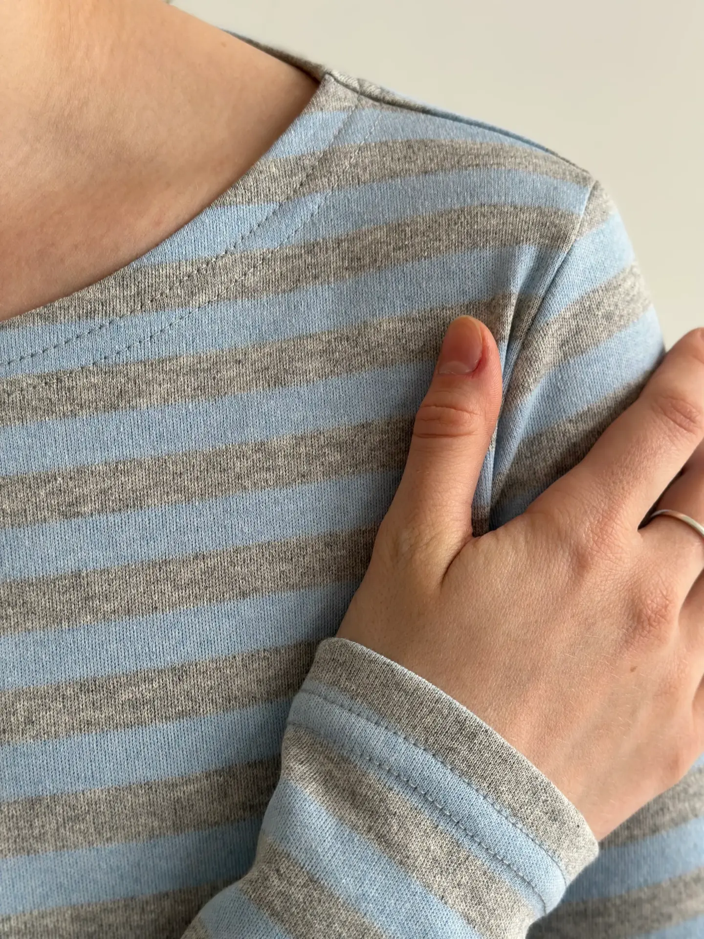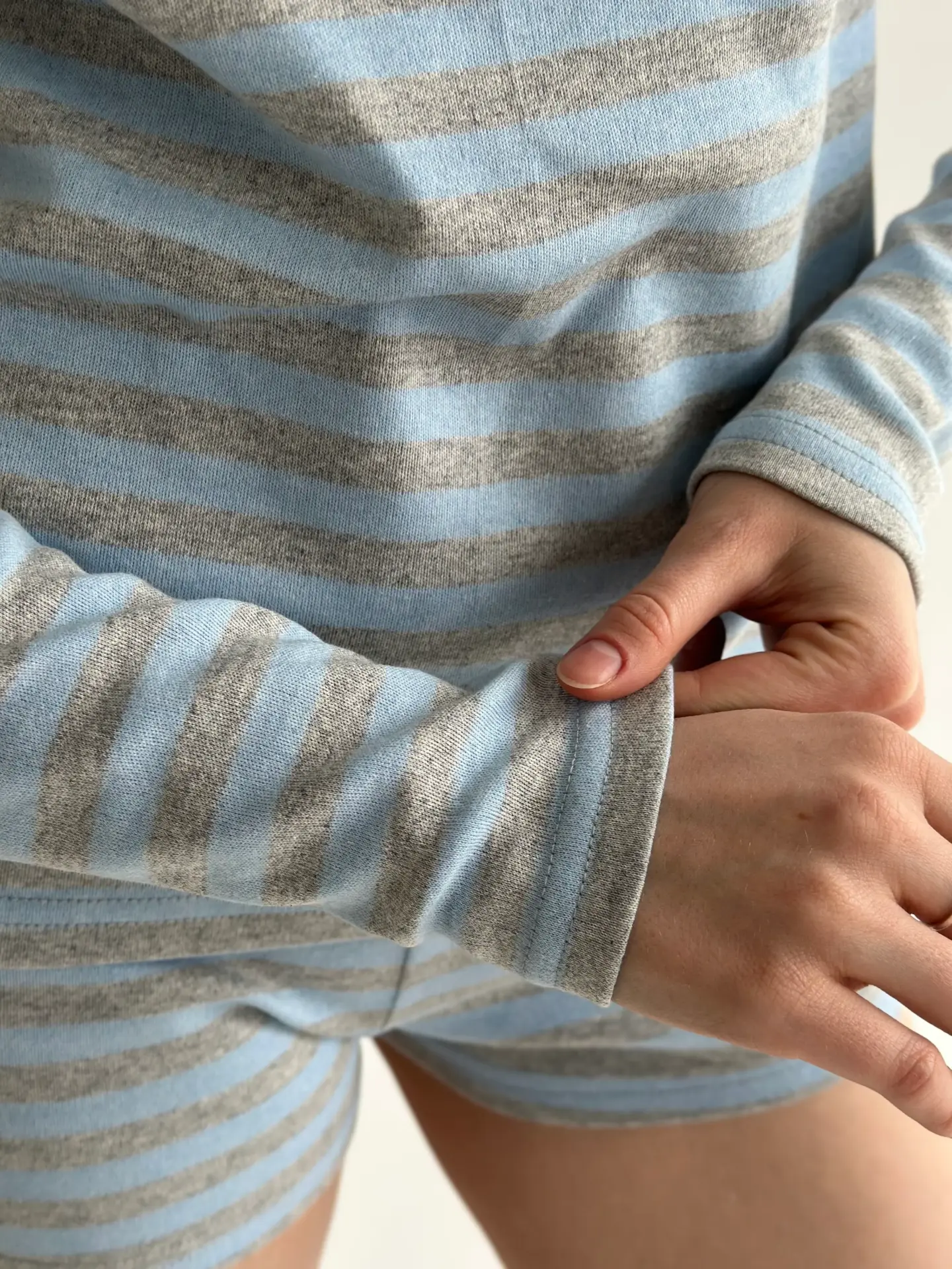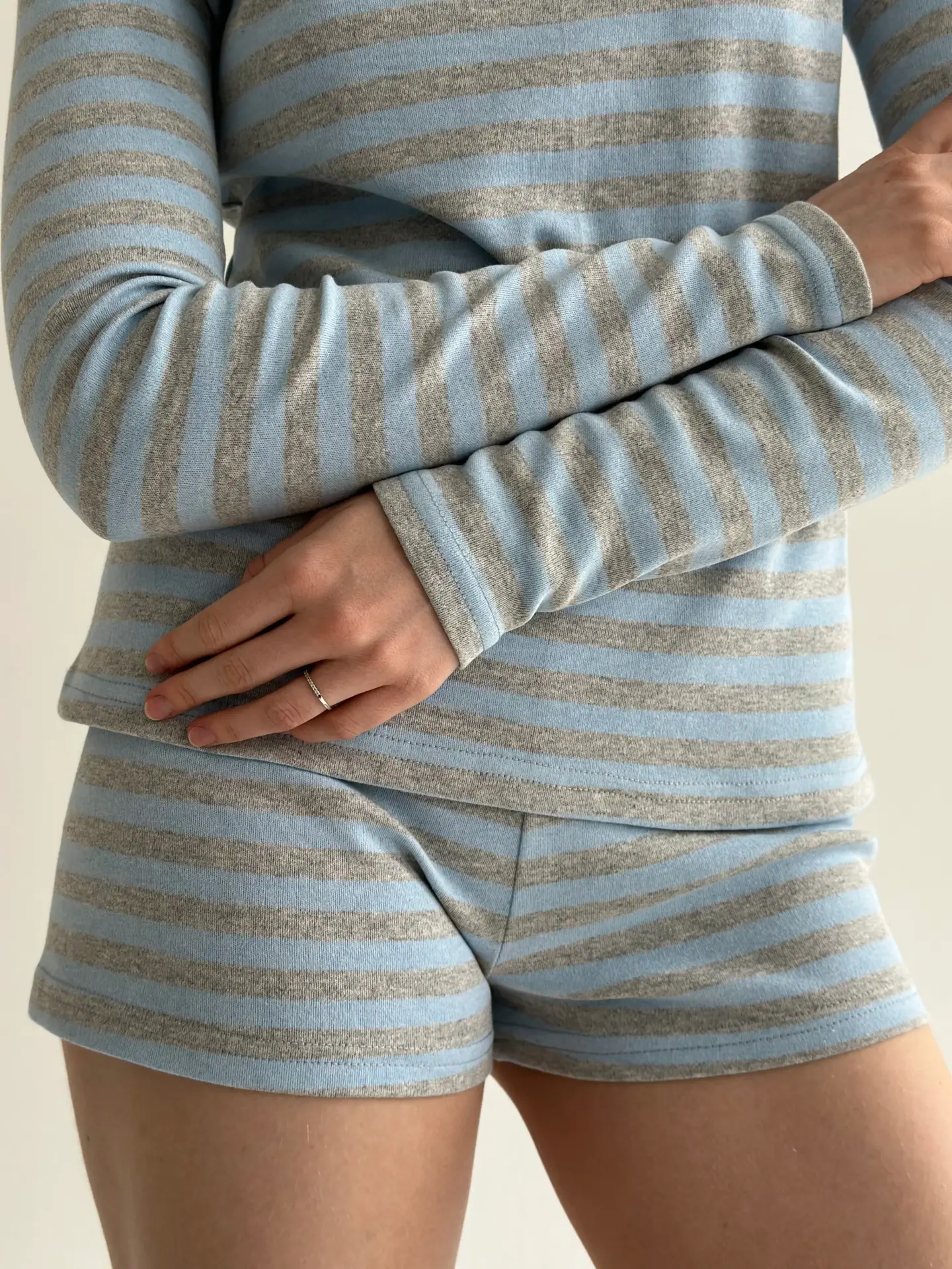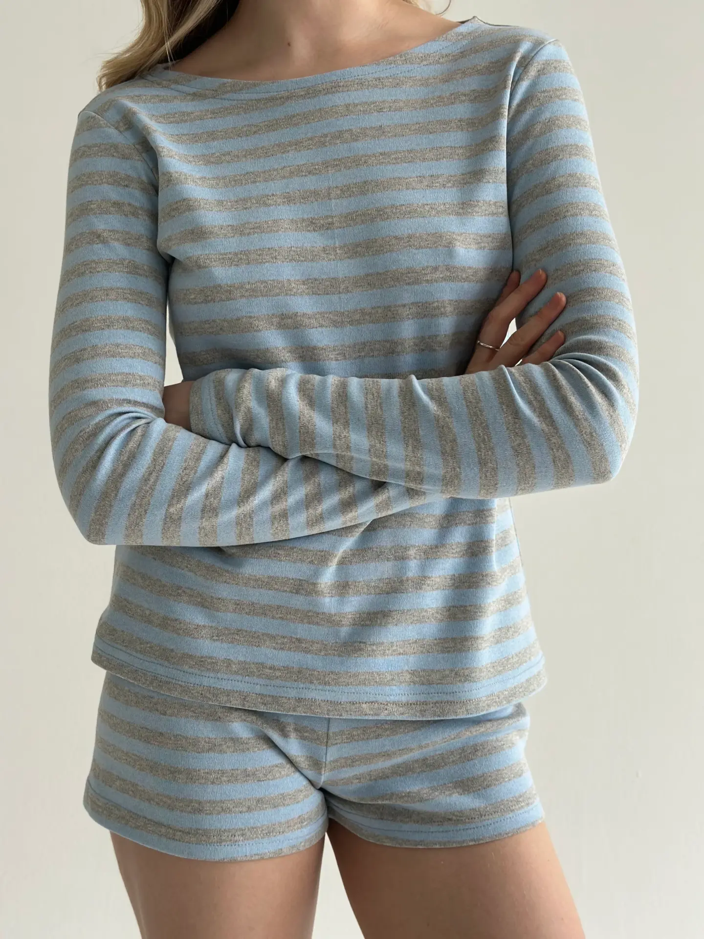 Трикотаж смужка Костюм лонгслів та шорти міні сірий/блакитний - Twins
