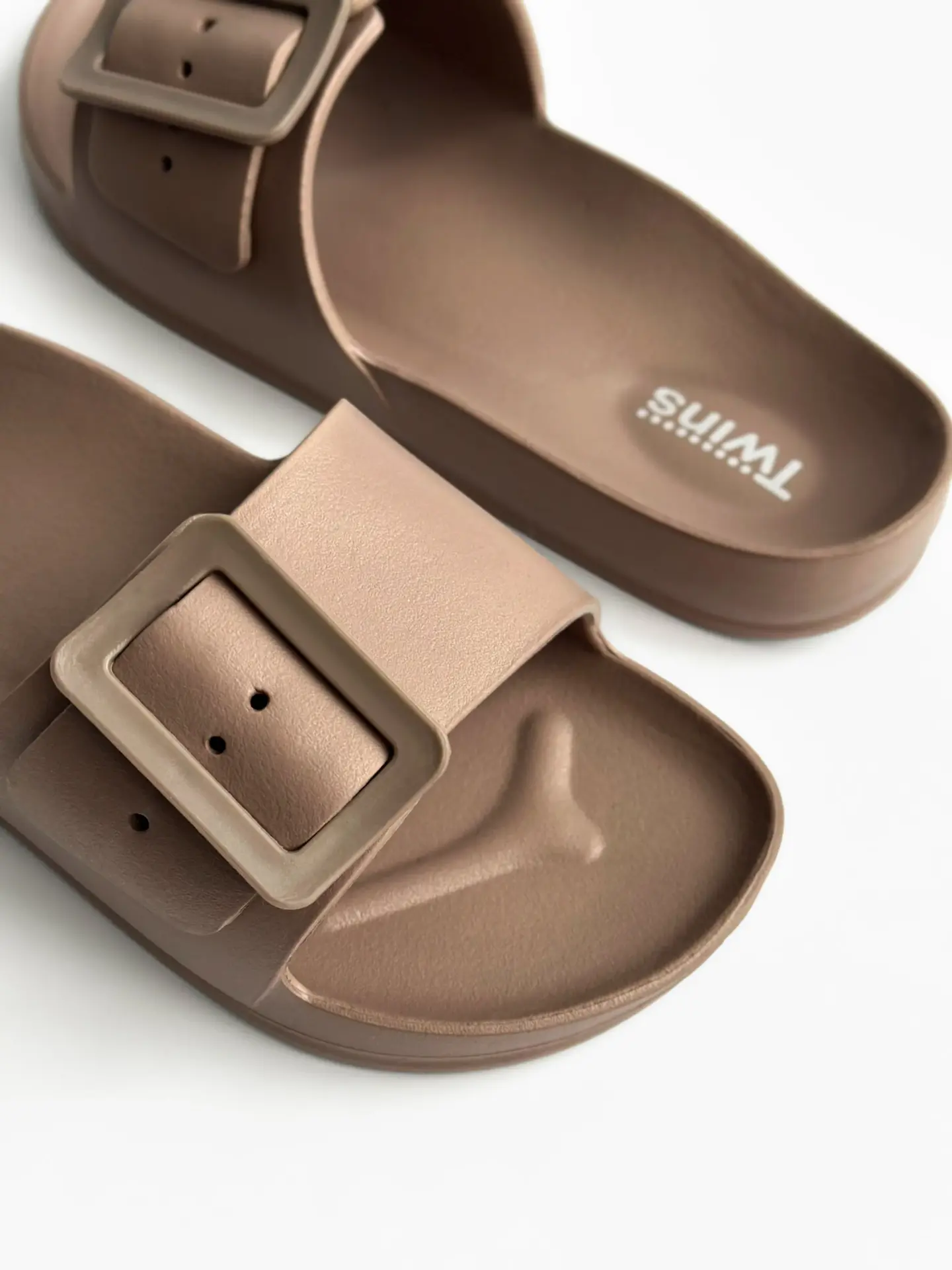 Капці Twins легкі та зручні у носінні. М’яка підошва дарує комфорт під час ходьби, а акуратний ремінець додає моделі стильного вигляду. Практичний варіант для пляжу, прогулянок і щоденного використання.