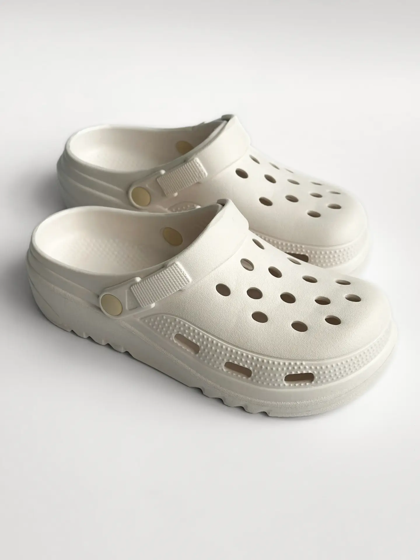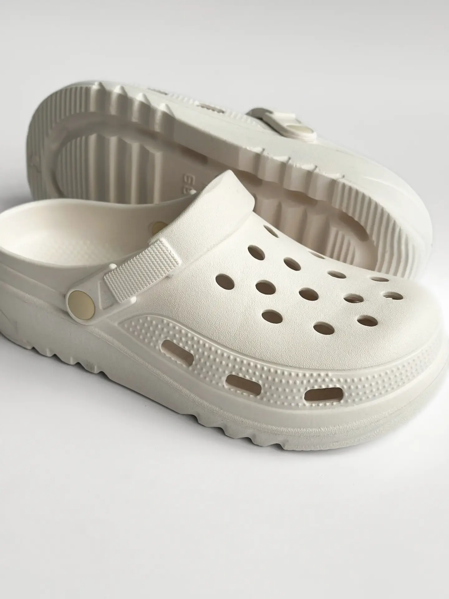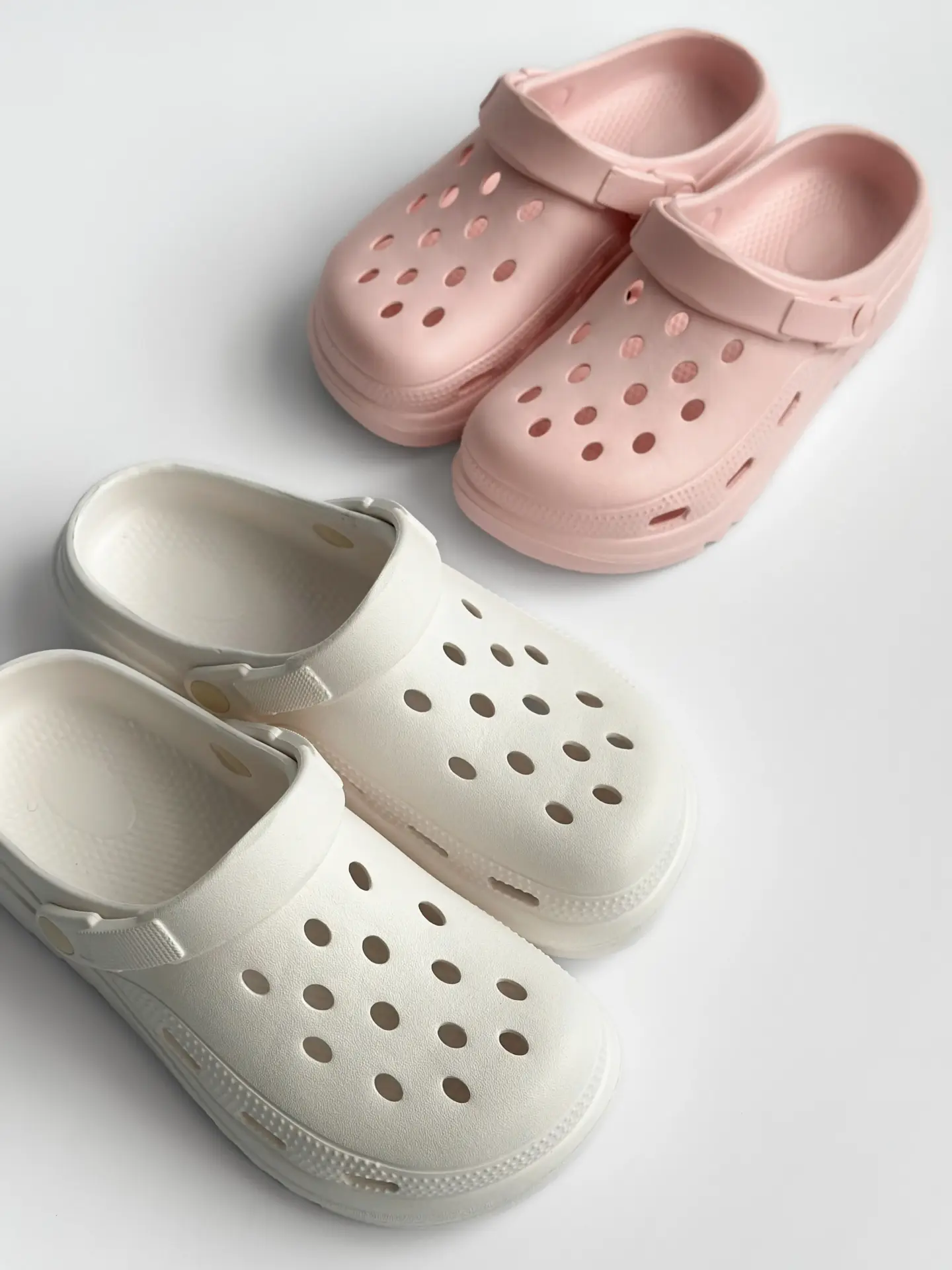 Капці сабо легкі та зручні у носінні. Закрита форма добре тримається на нозі, а м’яка підошва забезпечує комфорт під час ходьби. Практична модель для пляжу, прогулянок і щоденного використання.