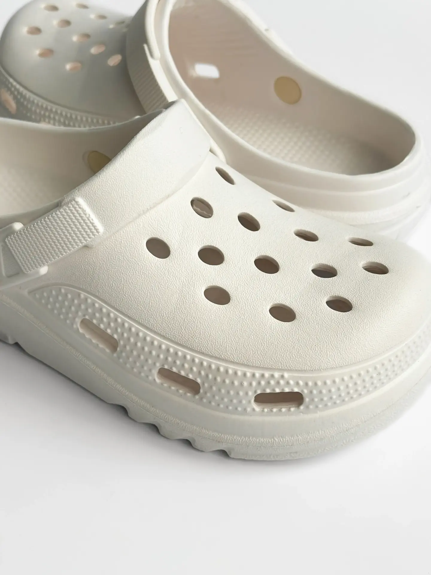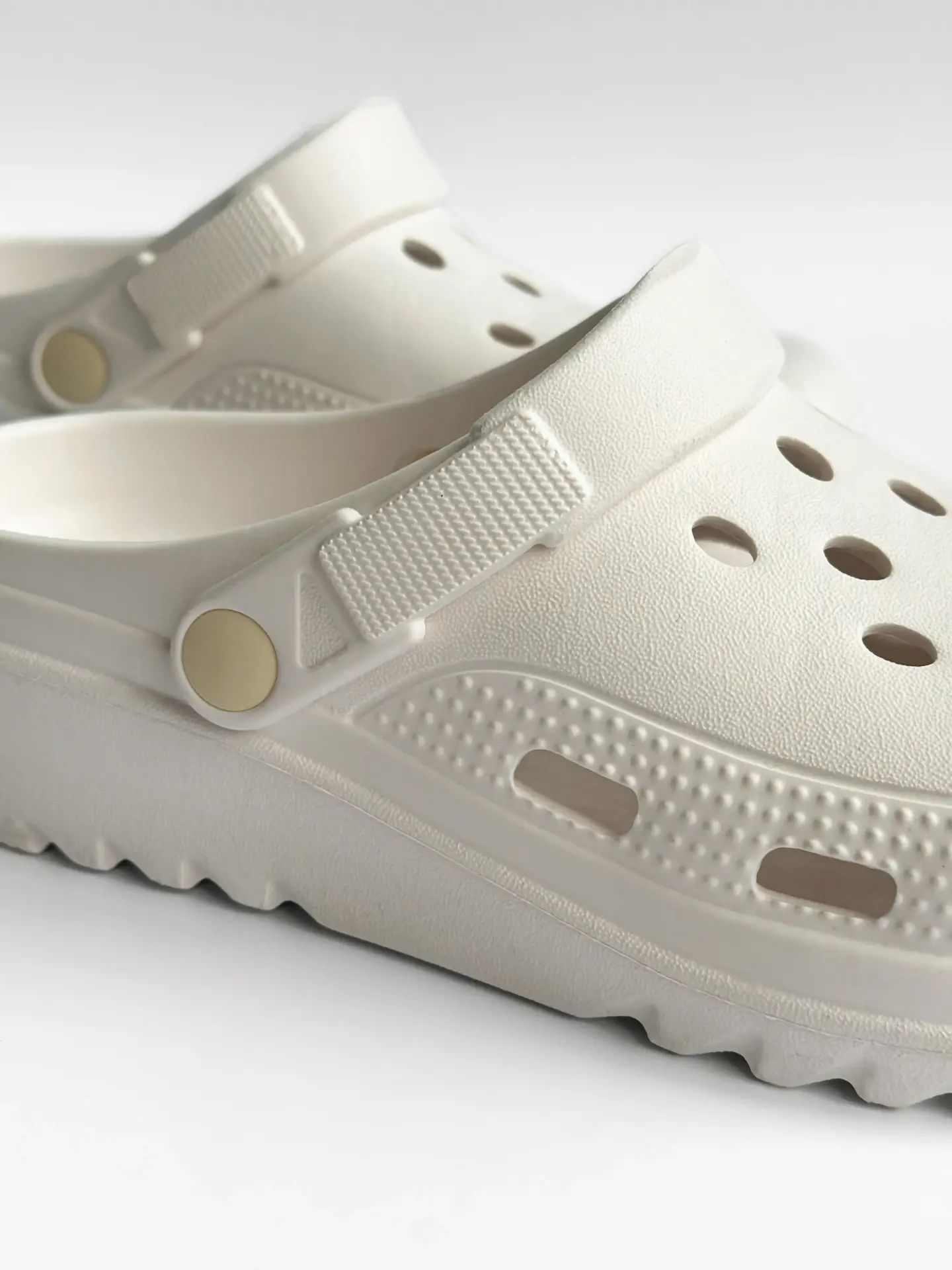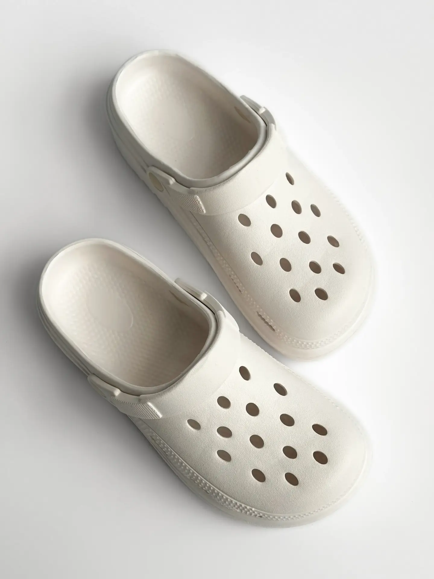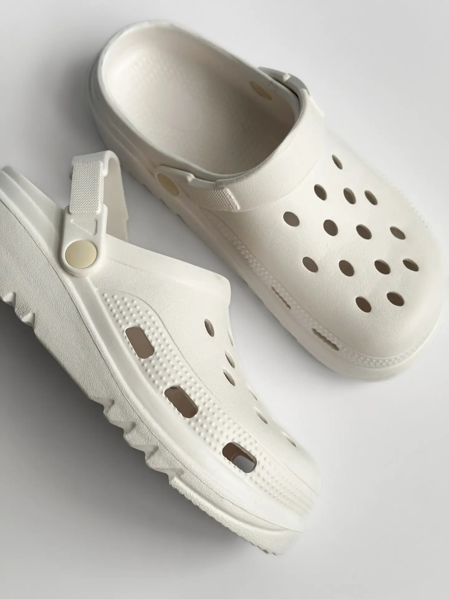 Капці сабо легкі та зручні у носінні. Закрита форма добре тримається на нозі, а м’яка підошва забезпечує комфорт під час ходьби. Практична модель для пляжу, прогулянок і щоденного використання.