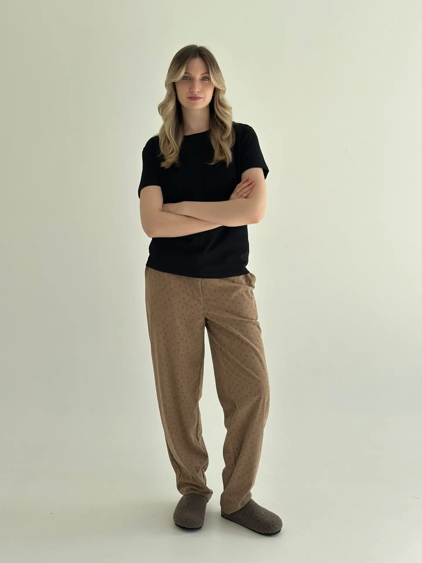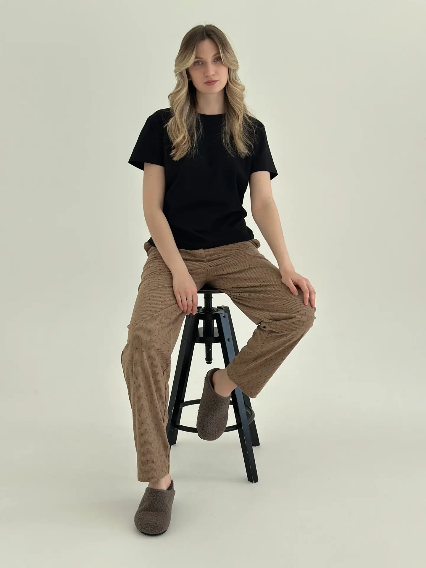 Вельветові штани МОМИ виглядають стильно й сучасно. М’яка фактурна тканина приємна на дотик і комфортна у носінні. Вільний крій красиво сідає по фігурі та створює розслаблений, але акуратний силует. Легко поєднуються з базовими речами й добре підходять для повсякденних образів.
