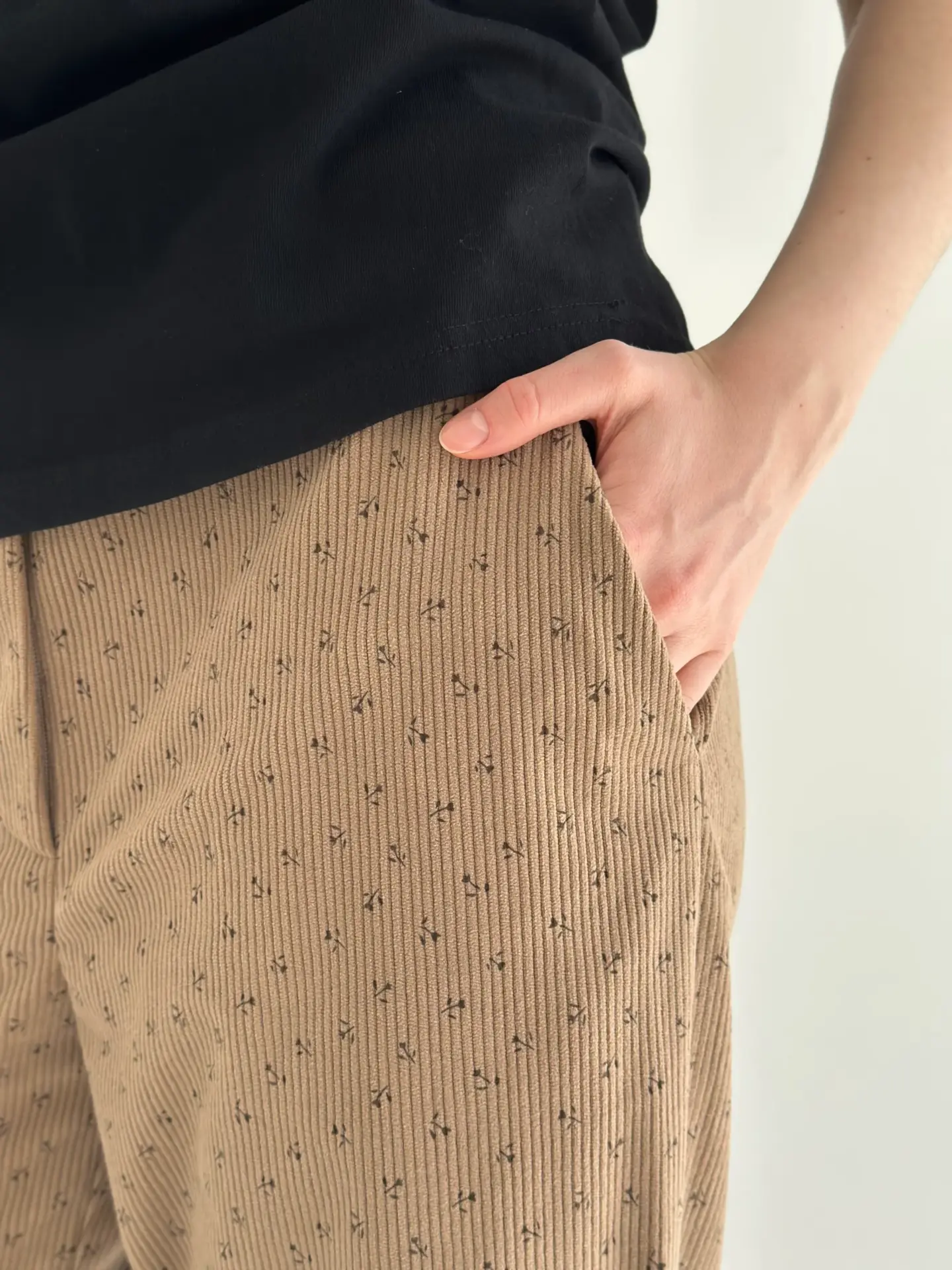 SOLD OUTВельвет штани МОМИ “бутон на бежевому”