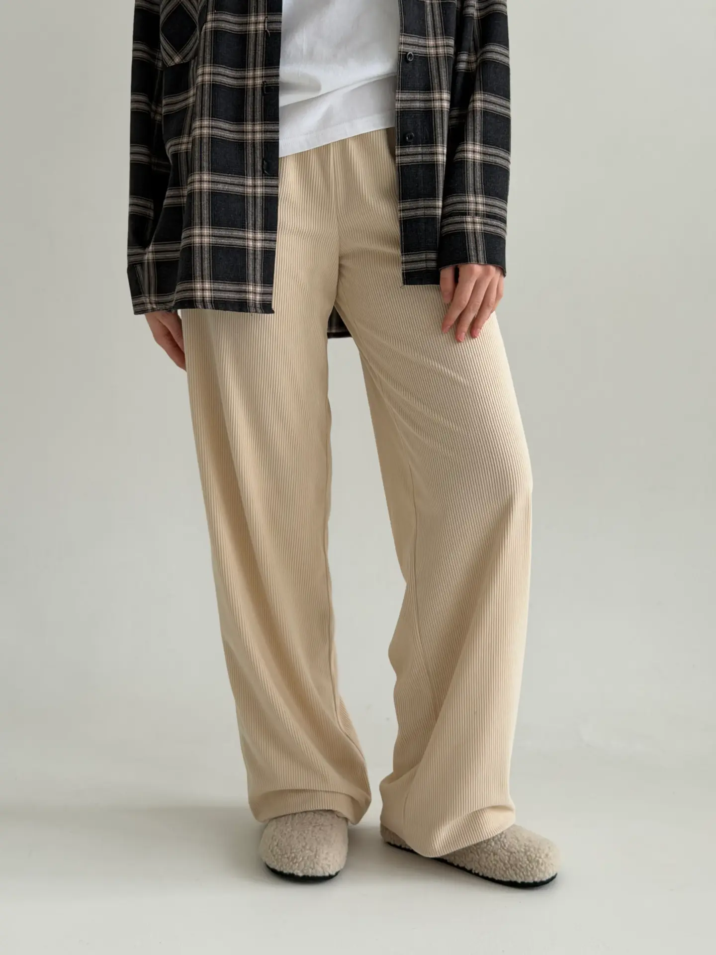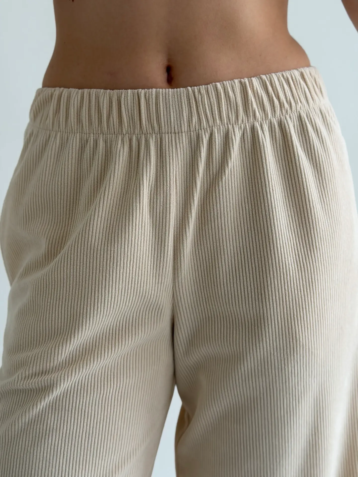Вельветові штани прямого крою виглядають акуратно й стильно. М’яка фактурна тканина приємна на дотик і комфортна у носінні. Прямий силует легко поєднується з різними речами та підходить для повсякденних образів.
