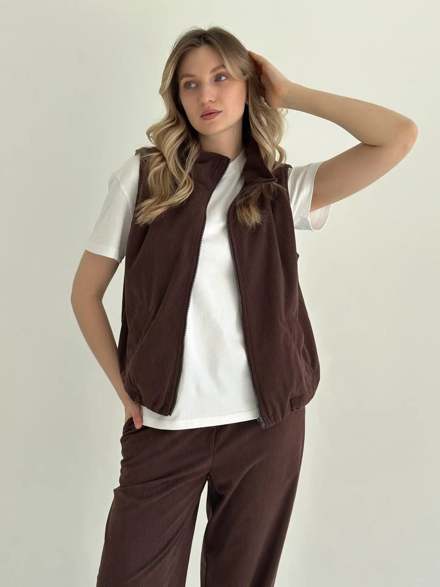 Вельвет жилет коричневий - Twins