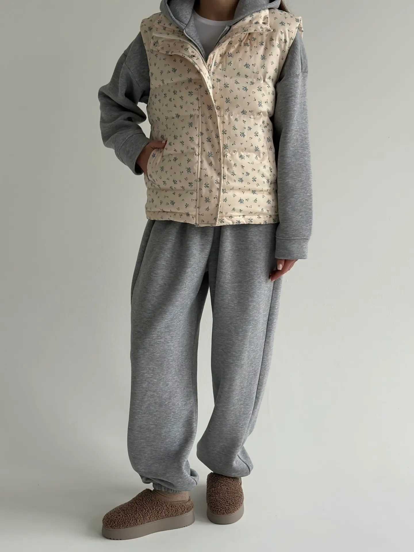 Стьобана дута жилетка в молочному кольорі виглядає ніжно та легко. М’яка, тепла й комфортна, вона приємно носиться та не обтяжує образ. Добре підходить для прохолодної погоди, коли хочеться тепла без зайвих шарів. Чудово доповнює повсякденні образи й додає їм затишку.